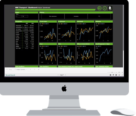 Bouw en combineer vanuit diverse grote databronnen (o.a. TMS, Boordcomputer en financieel pakket) een Power BI dashboard en krijg daadwerkelijk inzicht en grip op bijvoorbeeld de bezettingsgraad, marssnelheid, beladingsgraad, omzet/uur, omzet/km, laad- en lostijd en tijdigheid!